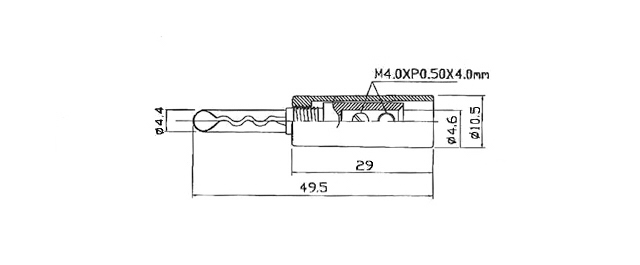 KOLONĖLĖS KIŠTUKAS ø4mm 'banan' tipo GOLD raudonas