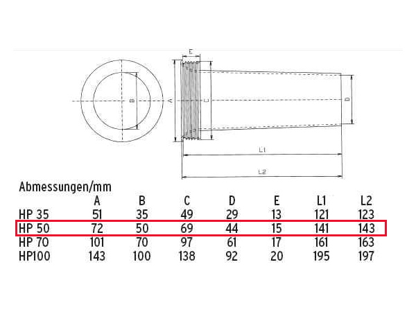 FAZĖS apgręžiklis ø50x140mm, plotas 19.5cm², HP50, BR/HP50