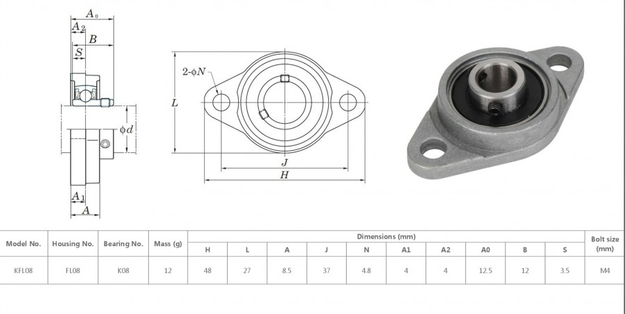 KFL08 laikiklis su guoliu korpuse, dviem tvirtinimo angomis yra paruoštas montuoti, pasižymi ilgu tarnavimo laiku.