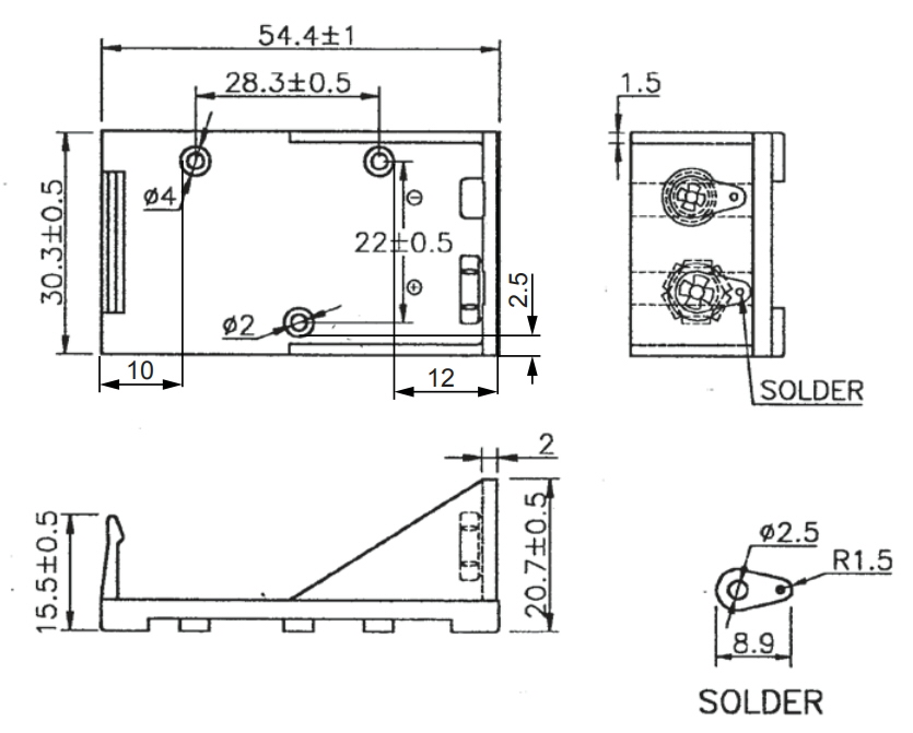 Laikiklis baterijai - 9V kronai 6F22, 6LR61