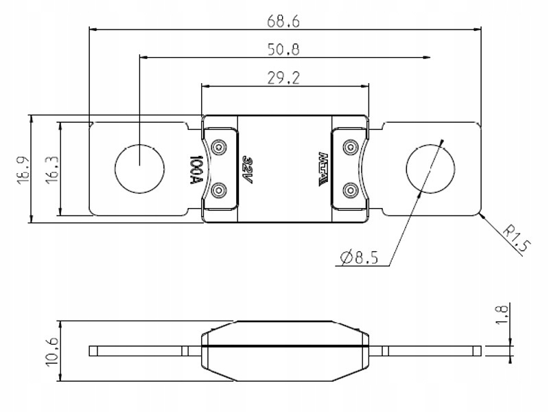 SAUGIKLIS POWERVAL 400-1200A 32V, 68.6x18.9mm