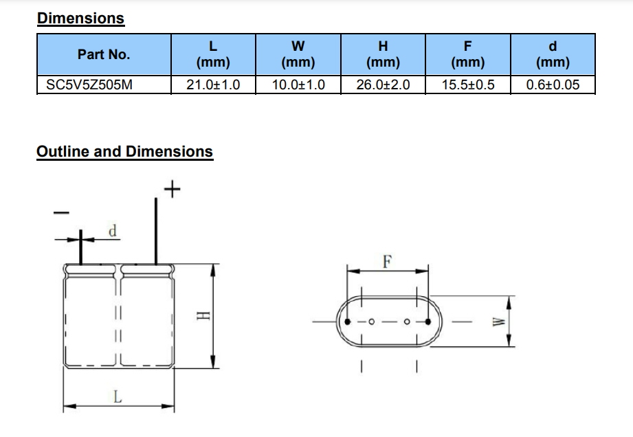 Superkondensatorius 5F 5.5V 21x26x10mm