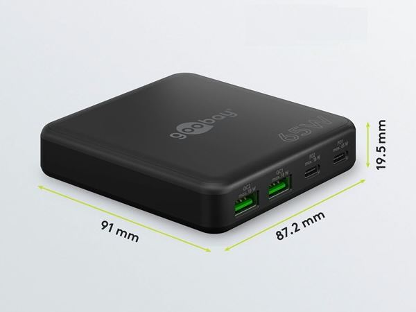 Зарядное устройство USB-C PD 65W MULTIPORT, 2 порта USB-C™ (Power Delivery), 2 порта USB-A (Quick Charge 3.0)