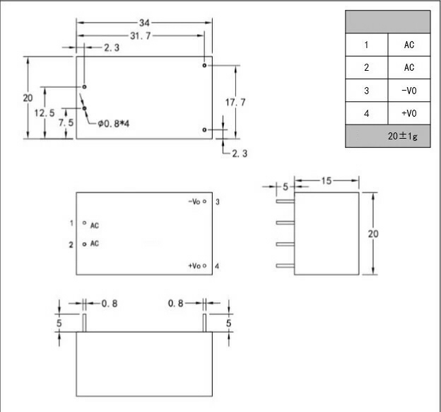 Модуль понижающего источника питания HLK-PM03, ~230 В > 3,3 В постоянного тока 1 А