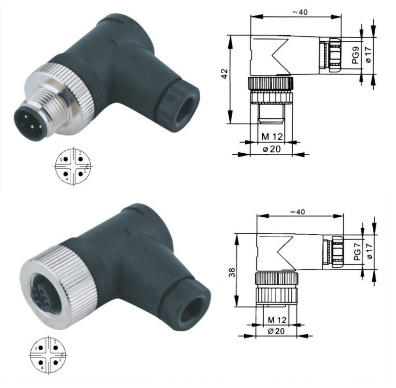 РАЗЪЕМ для датчика M12 4pin, угловой, комплект