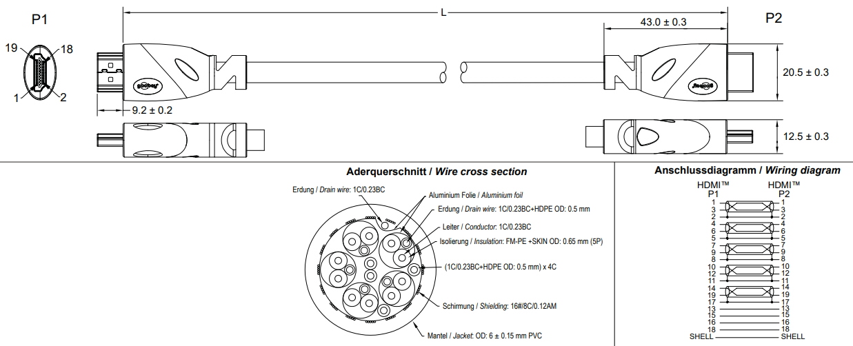 Позолоченные штекеры HDMI™ и передовые технологии гарантируют идеальную передачу сигнала, чистый звук, четкое видео и качество изображения.
