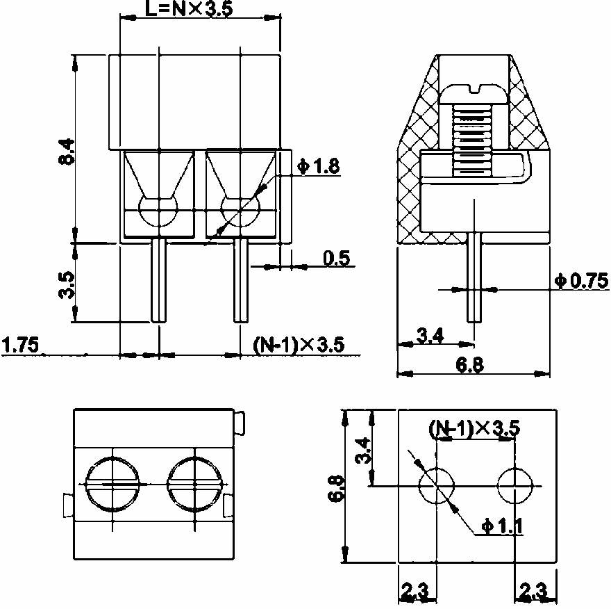 КОНТАКТНАЯ КОЛОДКА 2пина, L=3.5mm h=8.4mm