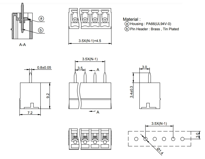 КОНТАКТНАЯ КОЛОДКА 6пина штекер, для пайки, шаг 3.5мм 300В 8A