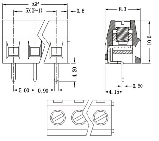 КОНТАКТНАЯ КОЛОДКА 3пина, L=5мм, h=10мм, green