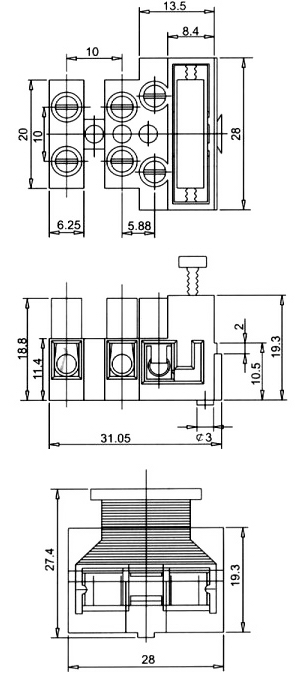 КОНТАКТНАЯ КОЛОДКА 3x 2.5mm², с держателем предохранитея