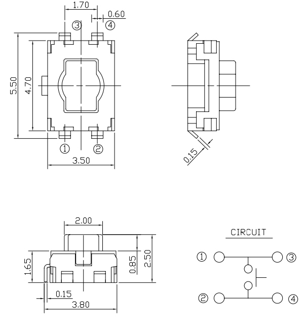 КНОПКА OFF-(ON) 50 mA / 12 V DC 4.7x3.5x2.5mm прямоугольная