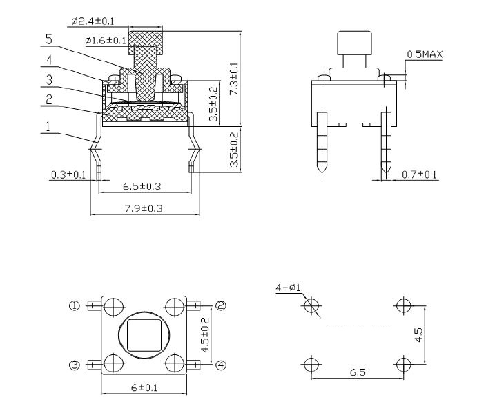 Размер кнопки: 2,4x2,4mm
