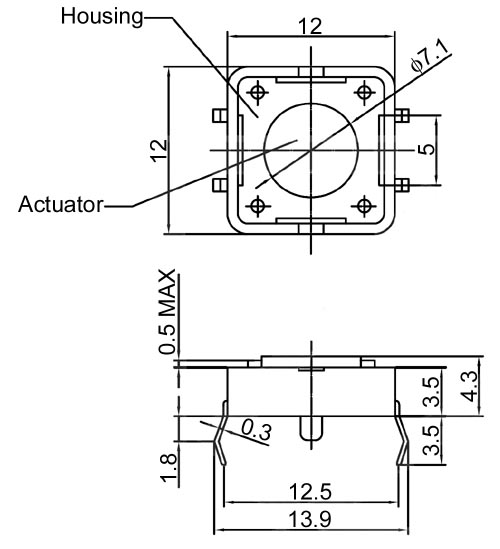 Высота кнопки от печатной платы: 4,3 мм