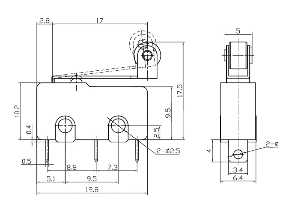 КНОПКА ON-(ON), 5A/250В, 10.6x19.8x6.4mm