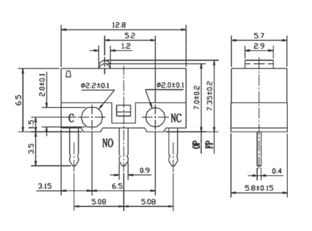 КНОПКА ON-(ON), 1A/125VAC, IP40, 12.8x6.5x5.8mm