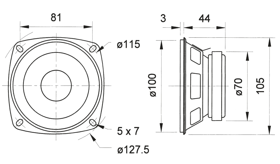 Полнодиапазонный динамик диаметром 10 см (4") с хорошим воспроизведением низких частот, сбалансированной частотной характеристикой и высокой эффективностью. Особенно подходит в качестве встроенного динамика для воспроизведения музыки и в качестве динамика для колонок сети 100 В.