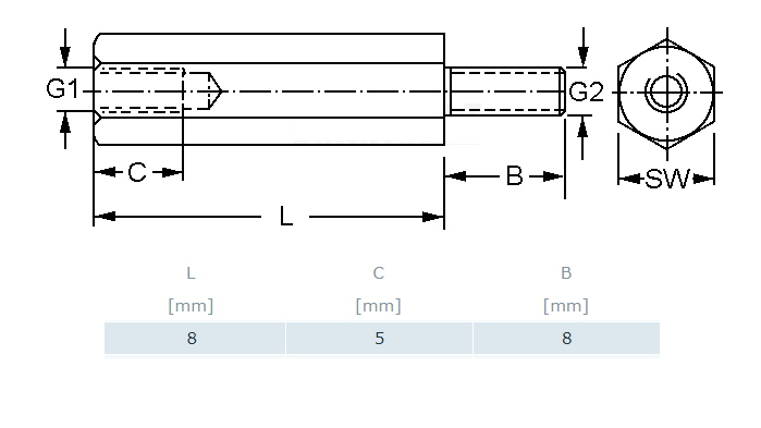 СТОЙКА 8мм металическая винт/резьба, L=8mm