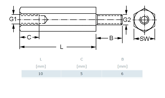 СТОЙКА 10мм металическая винт/резьба, длина резьбы 6mm