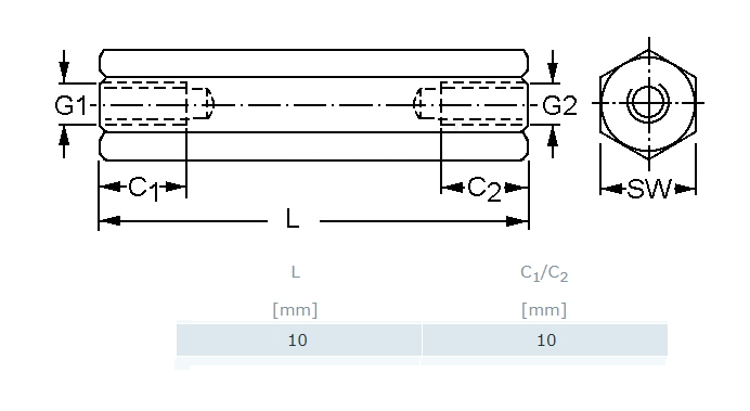 СТОЙКА 10мм металическая внутренея резьба/резьба