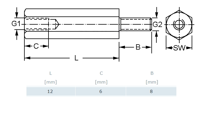 СТОЙКА 12мм металическая винт/резьба