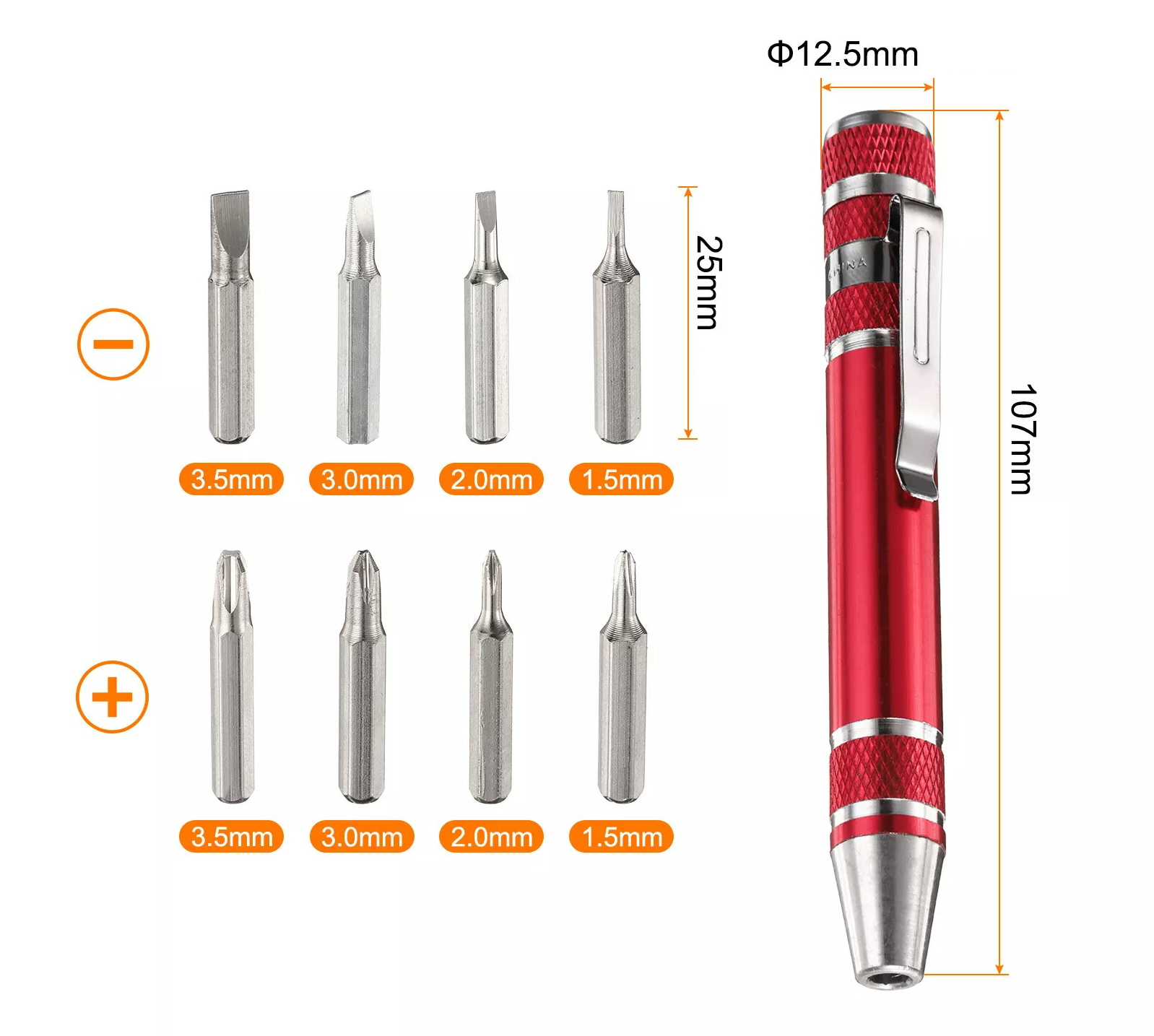 Набор карманных прецизионных отверток 8 в 1. Легкий, компактный дизайн, с зажимом для кармана. Идеально подходит для мелкой электроники, очков, ювелирных изделий и большинства мобильных телефонов. Материал: высококачественная хром-ванадиевая сталь