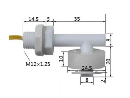 A small float-type liquid level control switch is mounted on the side. Simple design, easy to use level control.