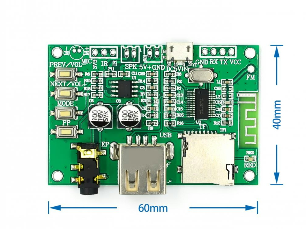 - Atbalsta Bluetooth audio, BLE datu pārraidi, U diska atskaņošanu, TF kartes