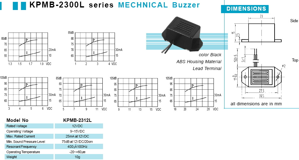 SIGNĀLS 12V/25mA 75db 23x17x15mm