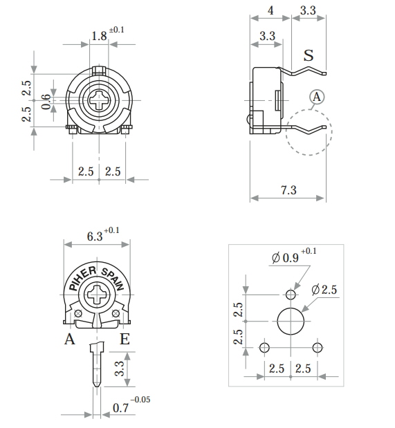 TRIMMER 250 kΩ horizontāls, 0,1 W, ±20 %, L=5x5 mm, Piher