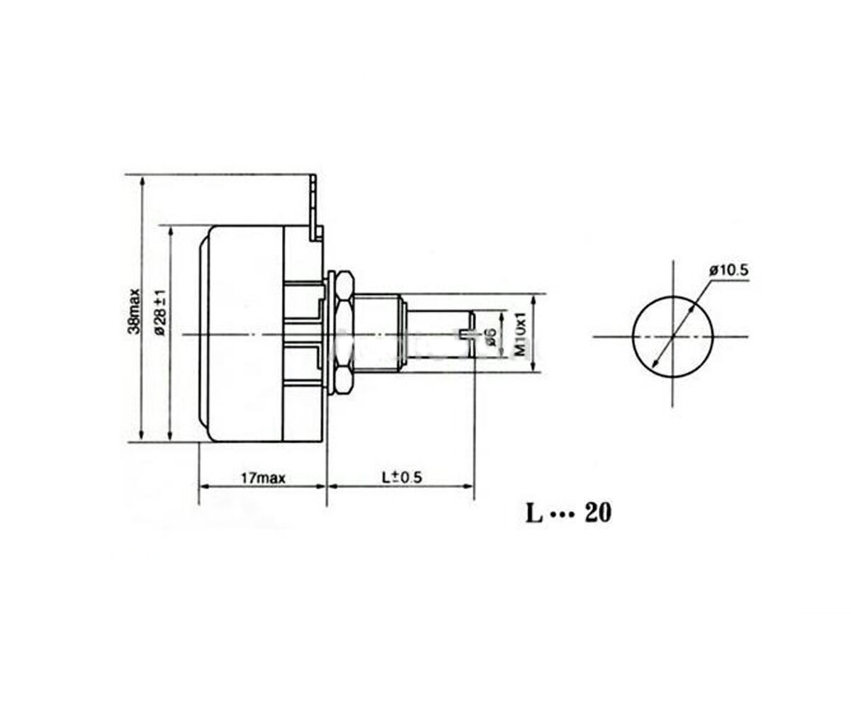 Potentiometrs mono 100R ±5%, 1W, lineārs