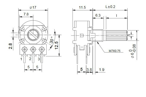 POTENTIOMETRS stereo log. 100kOm R17mm