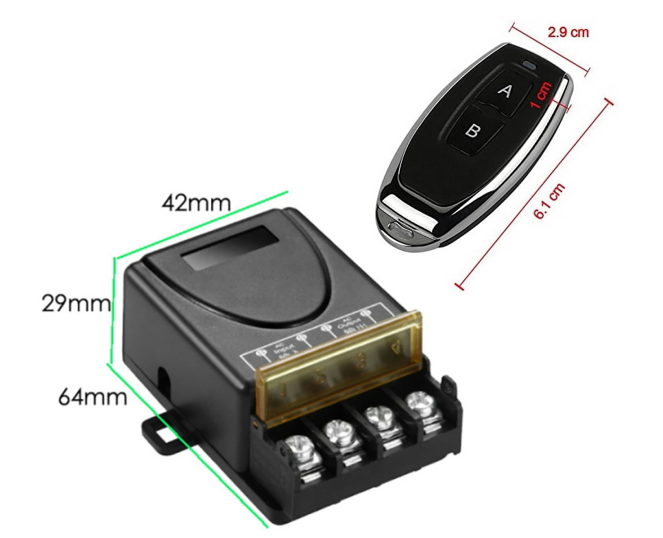 Produkto tipas: 1 kanalo (1 CH) belaidžio nuotolinio valdymo rėlės imtuvas su 2 mygtukų pulteliais.
