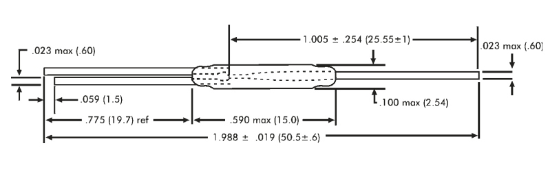 HERKONAS (kontraktronas) 0.4A 175VAC, 5W, ø2.54x15mm, 3 kontaktai, ON-ON