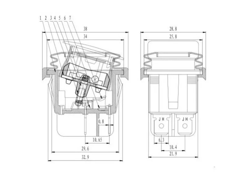 🔘 Klavišinis jungiklis (rocker switch) su nerūdijančio plieno apdaila, 4 kontaktų (4-pin) išvadais ir 2 padėčių ON/OFF veikimu. Skirtas patikimam maitinimo grandinių valdymui, kai reikalingas aiškus būsenos indikatorius (LED) ir apsauga nuo drėgmės (su IP65 dangteliu).